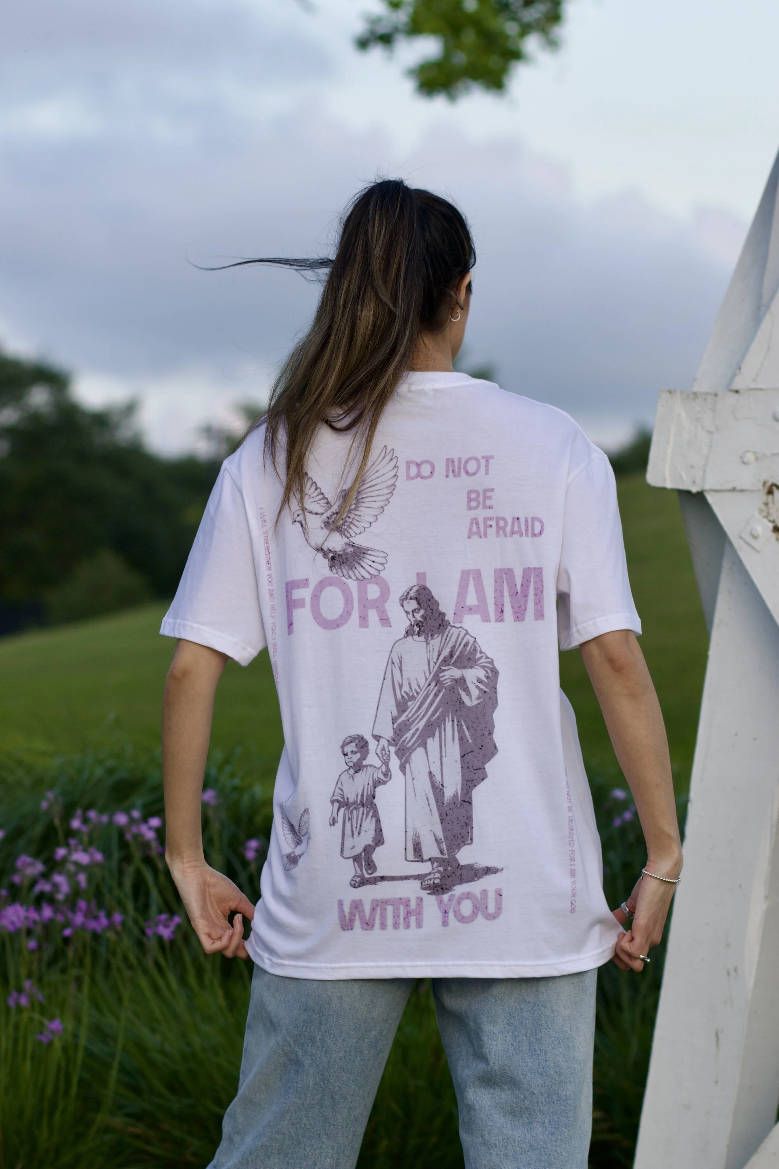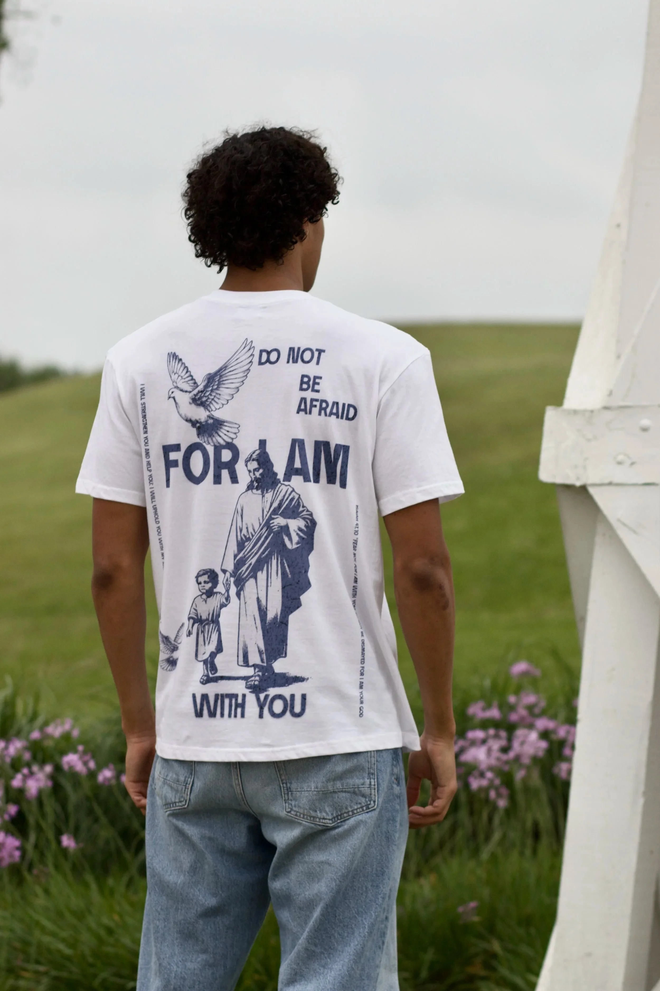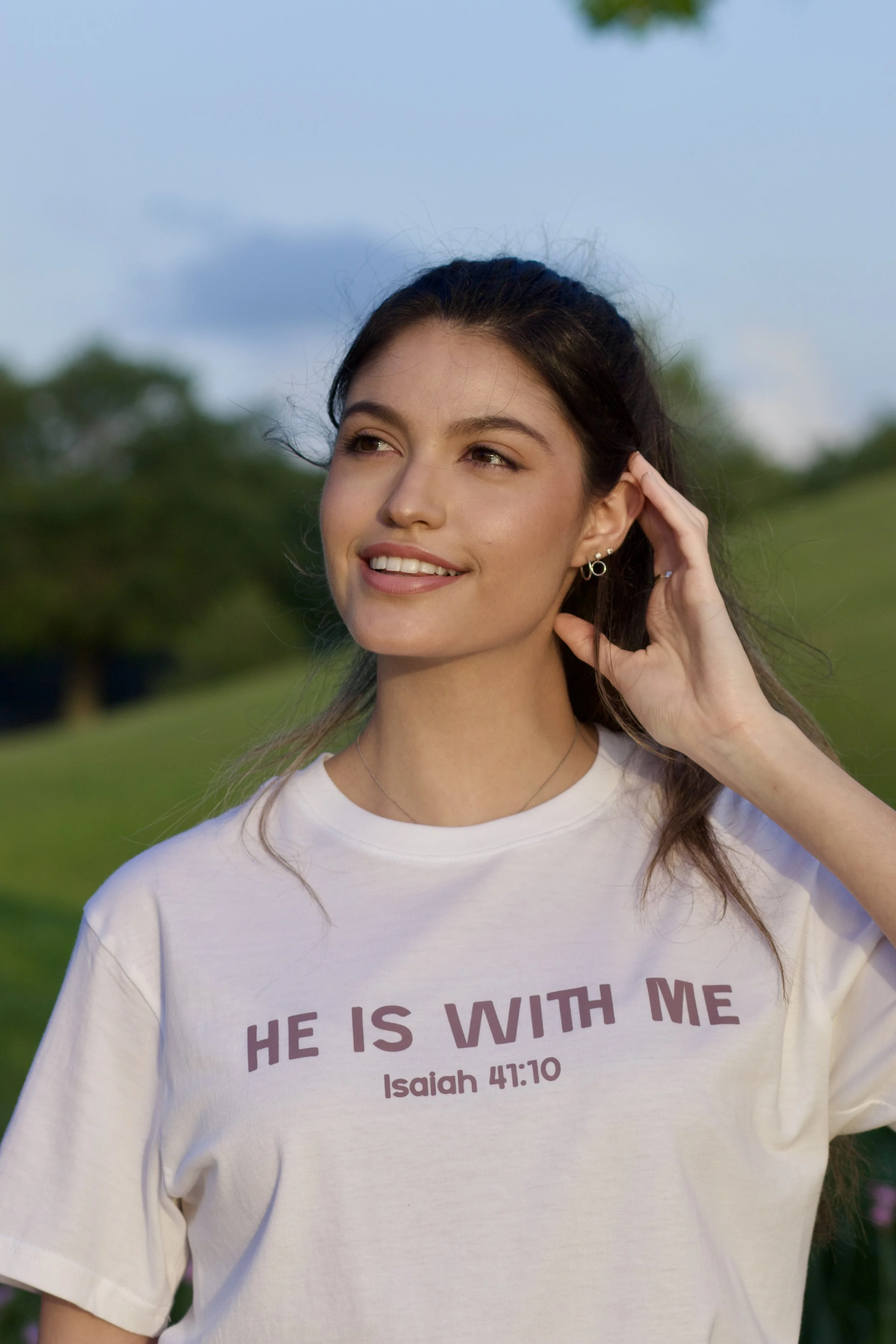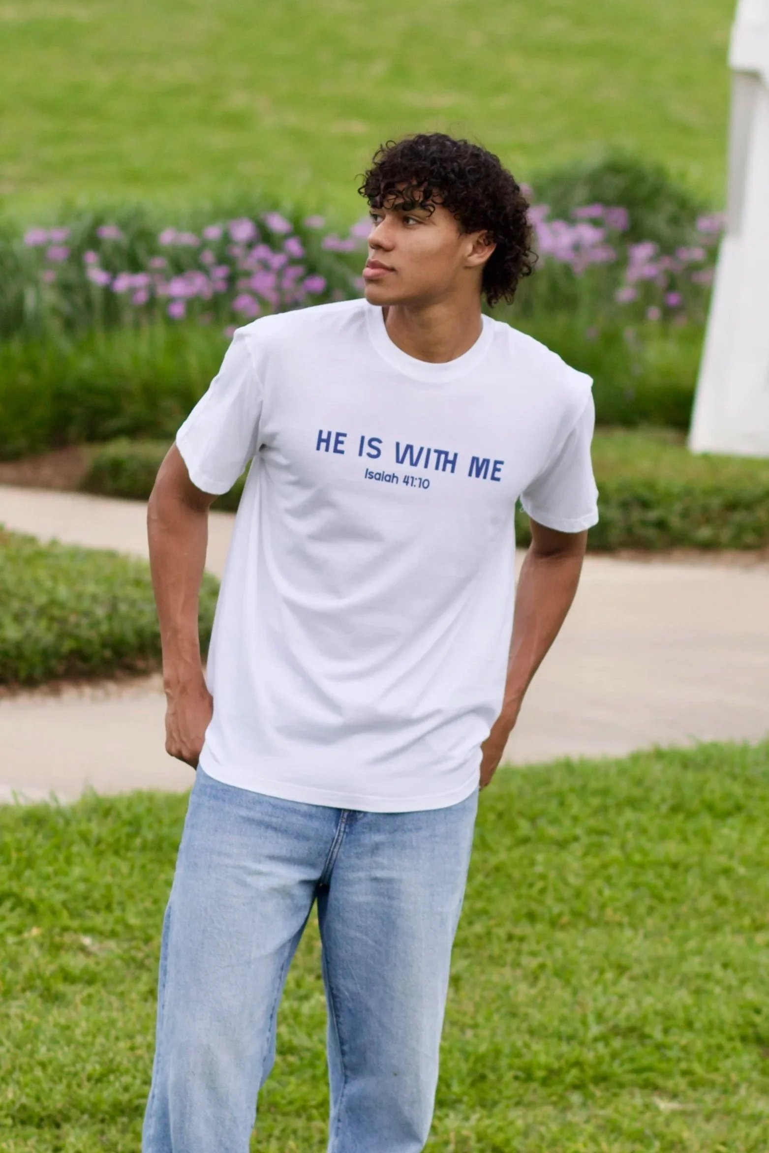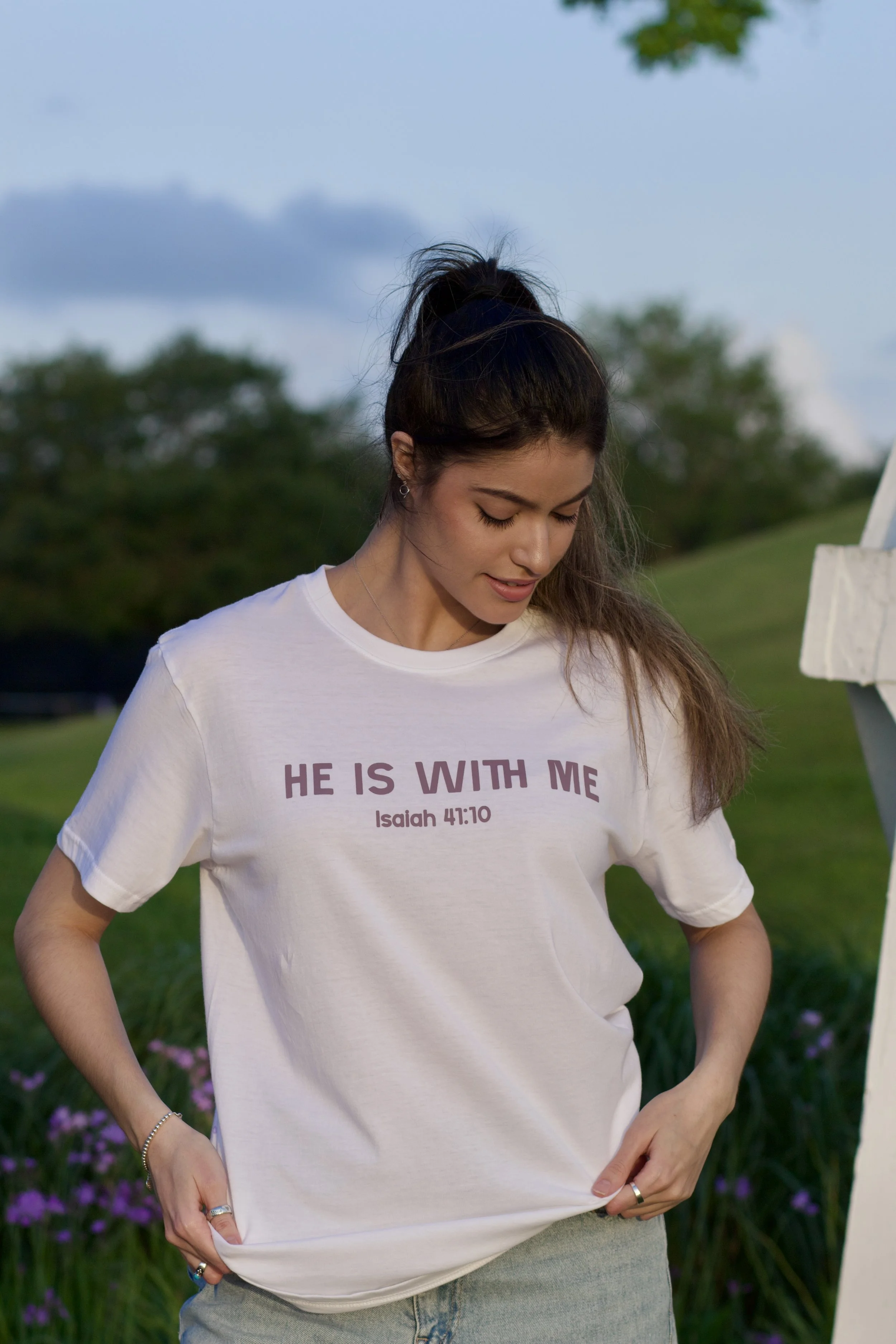 He Is With Me Tee: Classic Blue $25.00 He Is With Me Tee: Black & Gold $25.00 He Is With Me Tee: Cherry Blossom $25.00